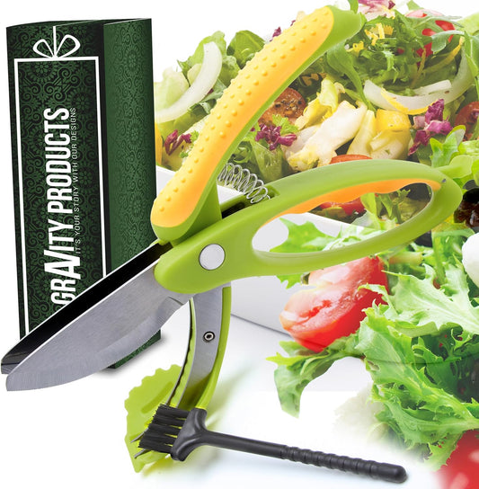 Salad Scissor Chopper, Stainless Steel Vegetable Slicer and Fruit Cutter, Salad Chopper, Heavy Duty Kitchen Salad Scissors, Multifunction Double Blade Salad Cutting Tool Ner Large or Snap Cutter